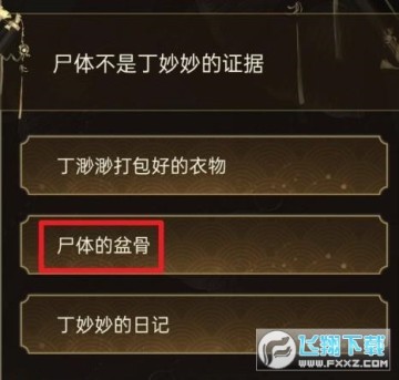 21. 之後對話選擇丁渺渺是凶手,屍體不是丁渺渺的證據是選擇屍體的盆骨,選項選擇屍體不是丁妙妙,第二個問題大難是丁妙妙打包好的衣物。