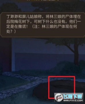 18. 接著前往梅花坊的後院,來到這裏點擊後院進行對話,點開墳包之後就可以得到林三娘的墓是空的。