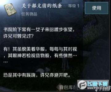 在杭州【1296,922】的花叢裏有一個紙條,撿起後在【背包】-【任務】裏多了道具【關於郝尤倩的紙條】,把它拿到正主旁邊使用,郝尤倩就在花叢旁邊,坐標是【1303,933】,在她麵前使用紙條道具可以觸發奇遇。
