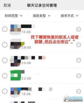 5、選擇需要恢複的聊天記錄,點擊右側的三個點圖標